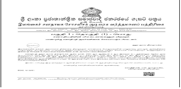 ஜனாதிபதி அனுர குமார திசாநாயக்கவின் கையொப்பத்துடன் கூடிய அதிவிசேட வர்த்தமானி இன்று வெளியாகியுள்ளது.